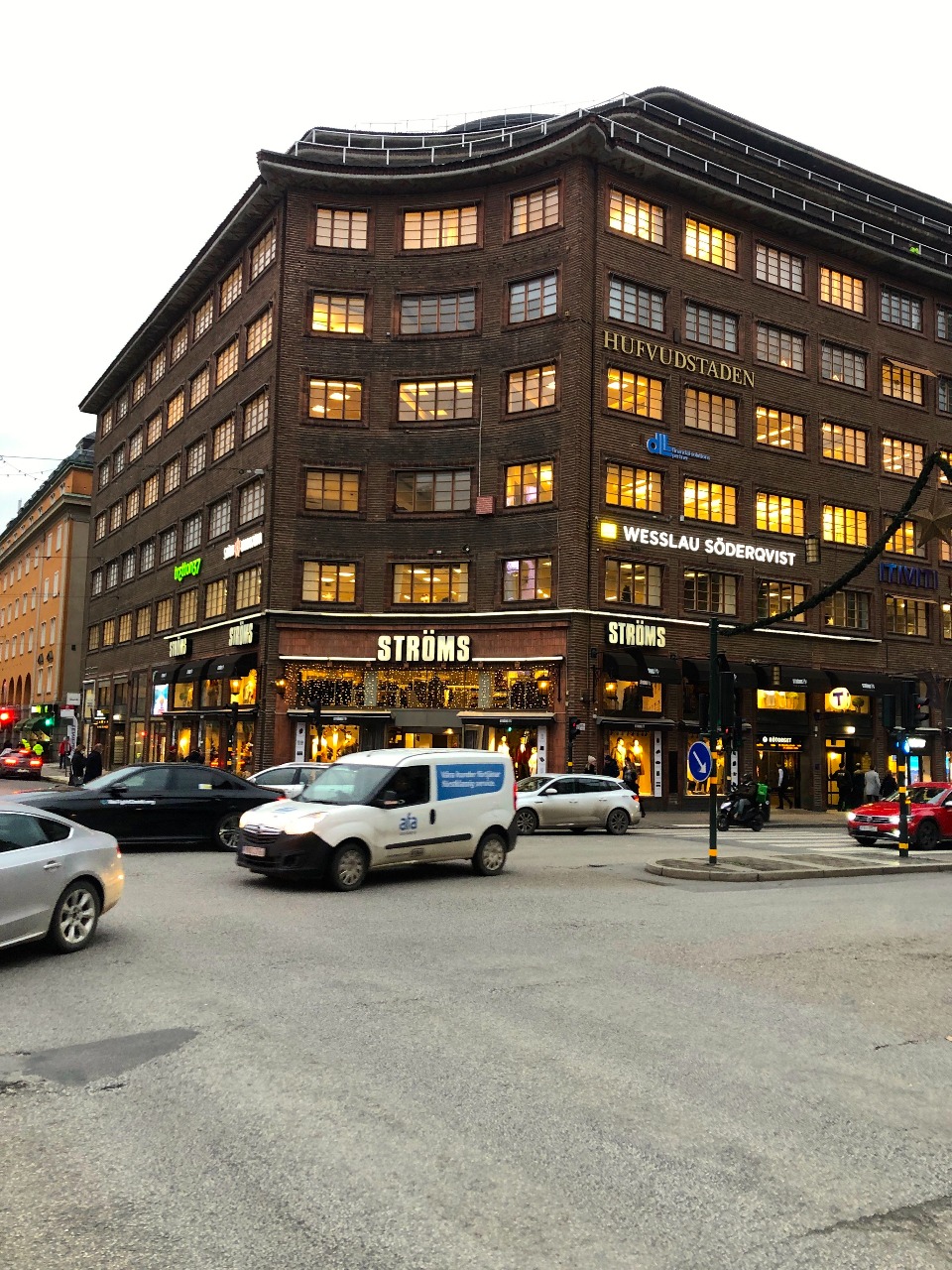 Ett stenkast från Hötorget ligger det s k Ströms-huset som i arkitekturhistoriska kretsar kallas Centrumhuset och som stod färdigt 1931. Roland uppmärksammade oss på de av CJs egen hand formgivna reliefer som smyckar fasaden med motiv som föreställer olika yrken (däribland CJ själv…) och fritidsaktiviteter. Man lär sig något nytt varje gång under WW-vandringarna!