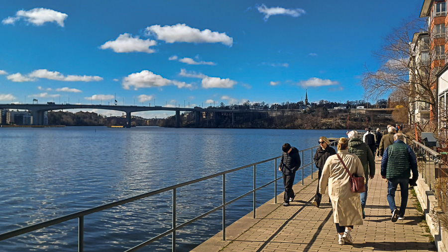 Ytterligare en bro tog oss över till Kungsholmen där vi följde stranden och smög förbi ryska ambassaden som numera är granne till Fria Ukrainas Plats vilket förhoppningsvis retar inte bara ambassadpersonalen utan förhoppningsvis även den diktatoriska Putin själv. Slutligen hamnade vi på restaurang Typ i DN-skrapan som bjöd på god mat till vänligt pensionärspris.