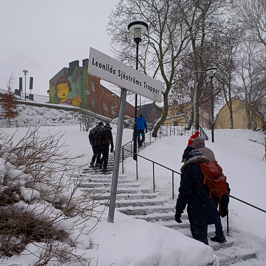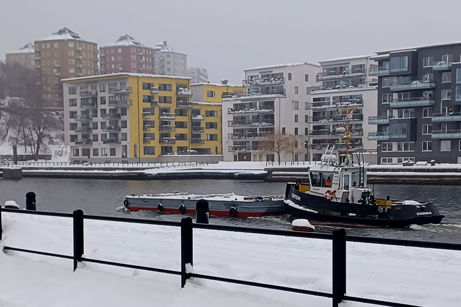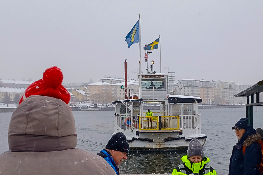 14.01.2026 10:30Denna gråmulna dag när det väntades en gul varning för snö och vind så startade vi vid Luma tvärbanestation. Färden gick mot kajen där vi tog färjan Lotten. Färjan namngiven efter en karaktär i PAFSś Minns du den stad serie. Fartyget byggt 1979 i Finland. Vi gick av på Barnängsbryggan. Området Barnängen figurerar i ”Barnserien” av samma författare.