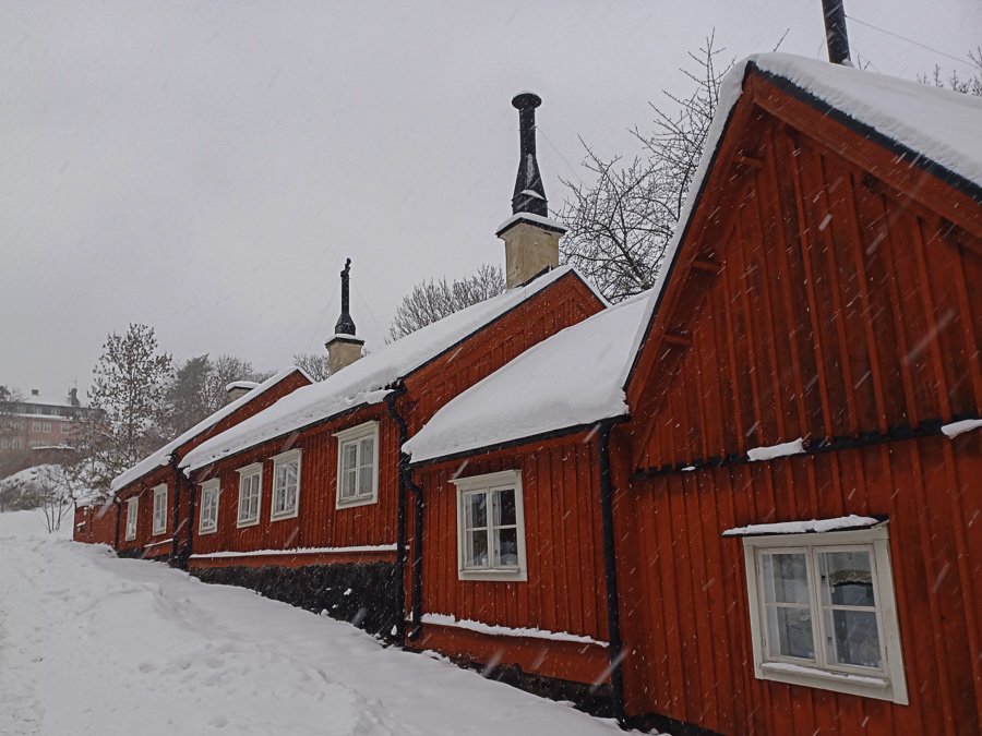 Vidare förbi Kvastmakargatan, Sågargatan och Lotsgatan som är gator med pittoreska röda små hus.