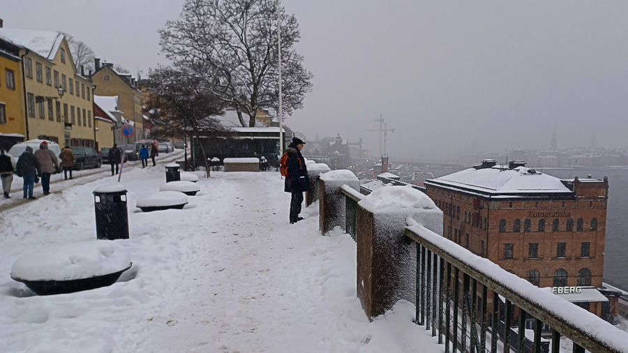 Som en kontrast står nybyggda delarna av Ersta Sjukhus stolt vid Folkungagatan. Här kämpade patienter och färdtjänstbilar i snömodden.