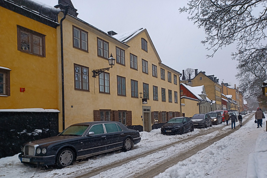 Sjöutsikten från Fjällgatan var ganska begränsad så blickarna vändes istället åt andra hållet där en förlängd Bentley beskådades. Trafiken på Fjällgatan var oväntat tät och vi fick som oftast hoppa från gatan där det var mer lättgånget.