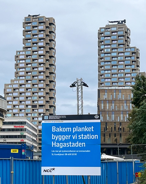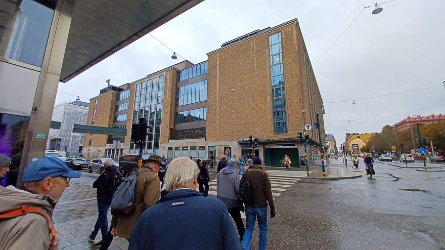 Med t-banan vidare till Rådmansgatan där dagens medarrangör Göran väntade och fika med tilltugg intogs vid den stora dammen söder om Asplunds skapelse Stadsbiblioteket. Vandringen fortsatte förbi Odenplan och Norrtullsgatan, vänstersväng på Vanadisvägen och genom Hagastaden som så småningom kommer omfatta 6 000 bostäder och 50 000 arbetsplatser.