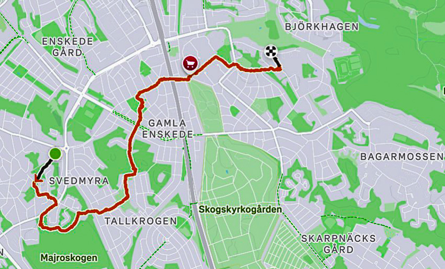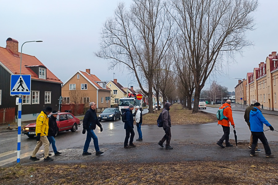 11.03.2026 10:30Kai hälsade oss flanörer välkomna vid Svedmyra tunnelbanestation som fått sitt namn efter ett torp som låg under Ersta gård och som då det begav sig hette Svinmyra och låg i krokarna. Efter fördelning av de sedvanliga uppgifterna och en vältalig introduktion om bl a de olika stadsdelarnas namn samt information om en av landets mest lönsamma ICA-affärer belägen i grannskapet, i folkmun benämnd BEA, påbörjades dagens promenad i mulet och otraditionellt WW-väder.