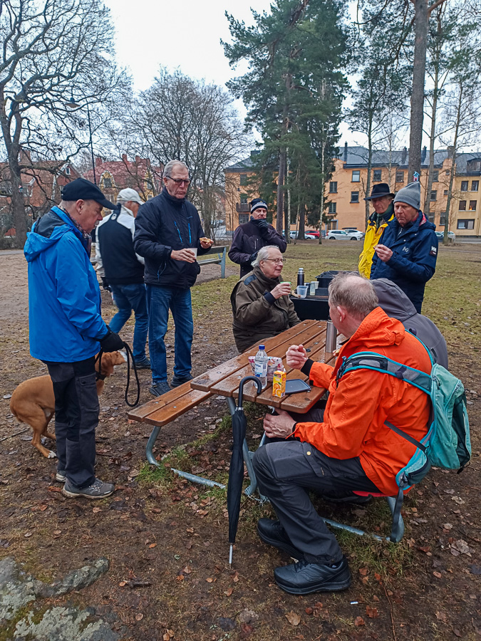 Därefter var det en kort sträcka kvar till dagens lunchställe, Nytorpet Bar & Bistro, där vi varit tidigare och där de flesta avnjöt en delikat panerad gös med äppelpaj med vaniljsås till efterrätt och blev vänligt omhändertagen av krogens charmiga italienska. Olle tackade Kai för en fin promenad, som mätte 6,3 km, och så gjorde även övriga promenerare Ola, S-O, Jörn, Janne, Ålis, Stefan (med Nisse), Tompa och Christopher, vid pennan.